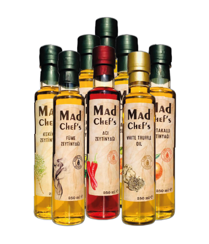 Her damlasında lezzetiyle fark yaratan, yemeklerinize eşsiz tat katan MadChefs Zeytinyağı! Doğal ve kaliteli zeytinlerden üretilen MadChefs Zeytinyağı, kahvaltılarınızın ve yemeklerinizin vazgeçilmez lezzet dostu olacak.