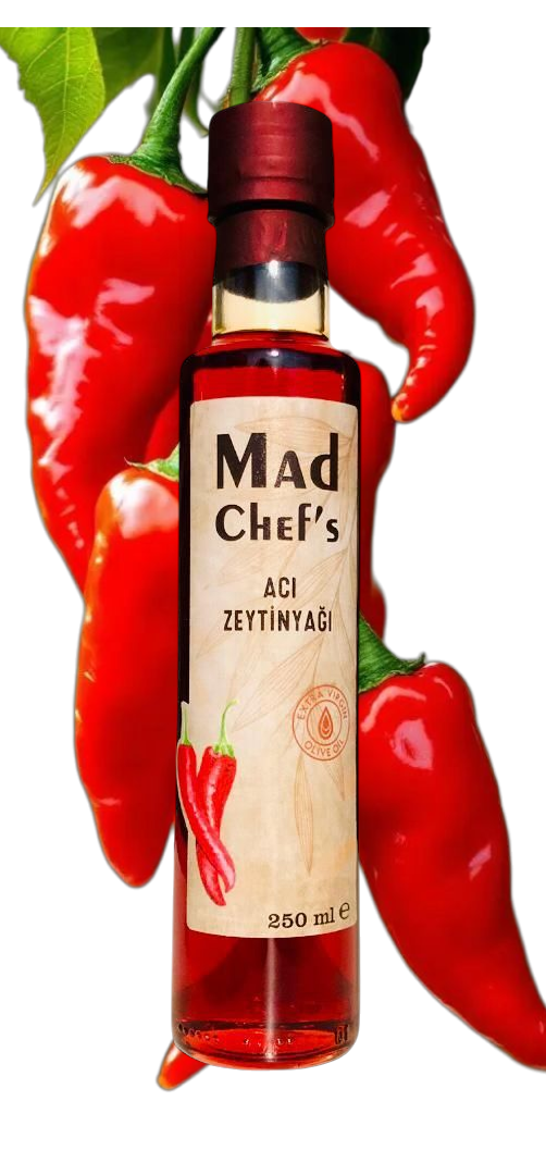 Madchefs acılı zeytinyağı, özel üretim yöntemiyle hazırlanır. Soğuk sıkım kalitedeki zeytinyağı ile seçilmiş kırmızı biber aroması kontrollü şekilde infüze edilir. Bu sayede: